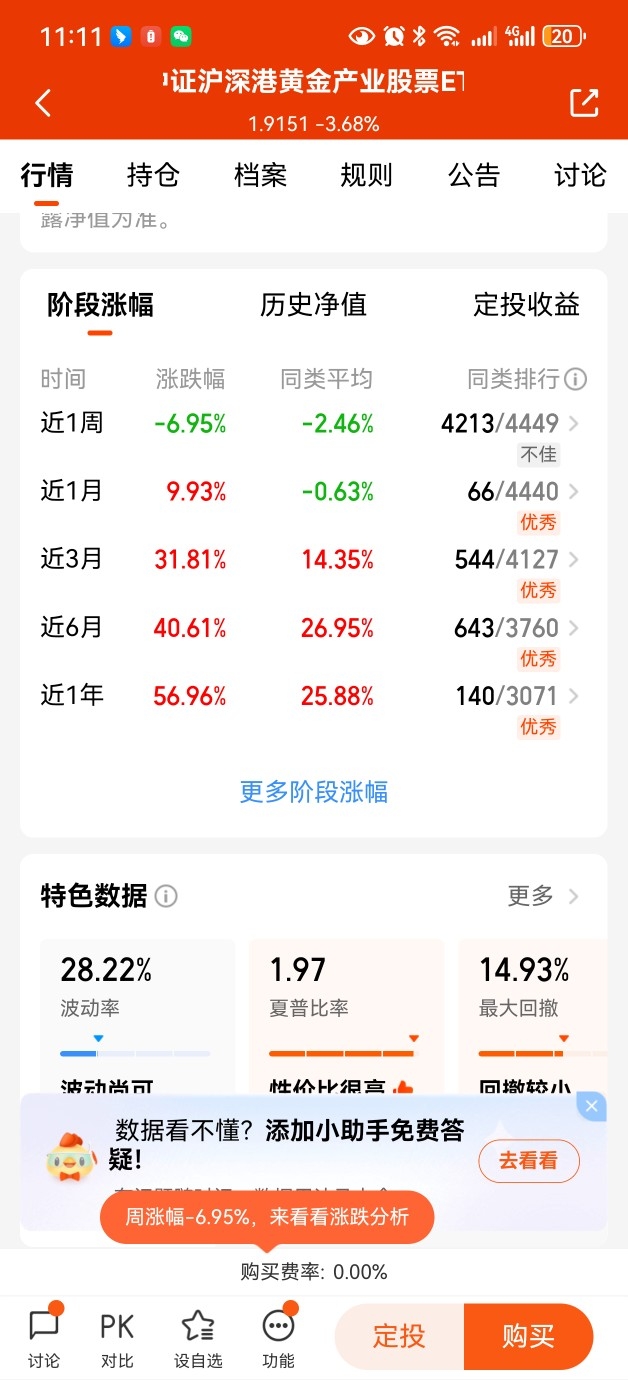 黄金股回暖,相比现货黄金在历史高位,黄金股无疑是金价的放大器,$永赢中证沪深港黄金产业股票ETF发起联接C$ 跟踪的是中证沪深港黄金产业股票指数,覆盖A股+港股的黄金标的,成份股分布黄金产业链的上市企业,精选沪深港三地优质黄金产业链上市公司。放长眼光来看业绩也不错,近三个月涨幅+31.81%,近一年涨幅+56.96%,弹性不错。#黄金暴力反弹 一举突破新高#