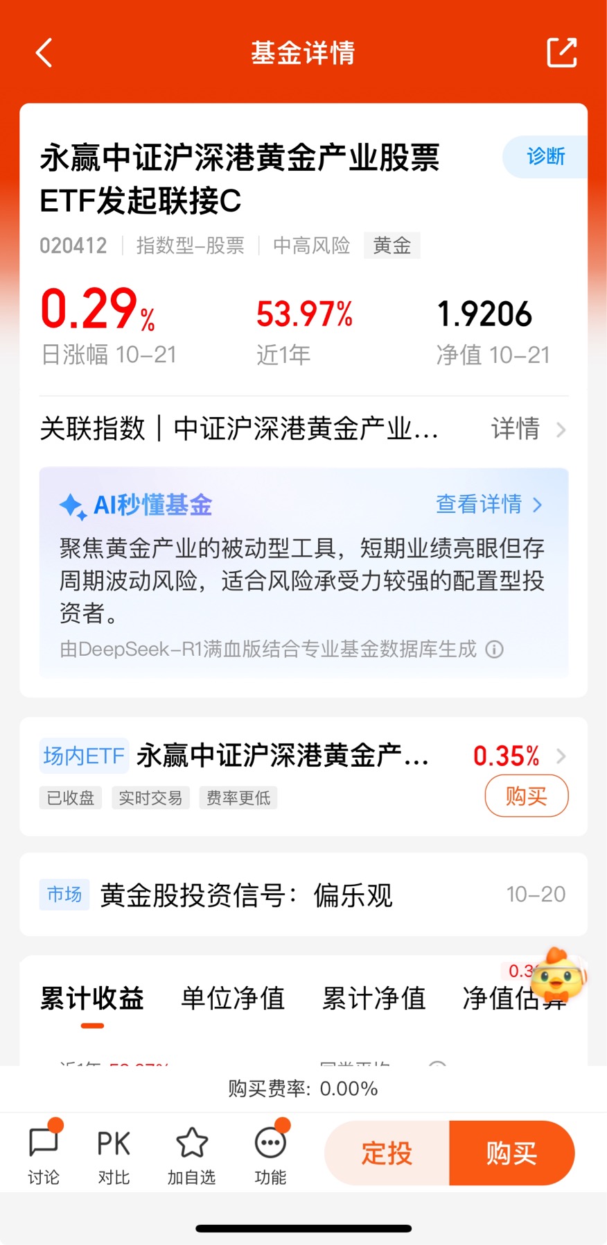 $永赢中证沪深港黄金产业股票ETF发起联接C$今天收0.29%,近一个月10.2