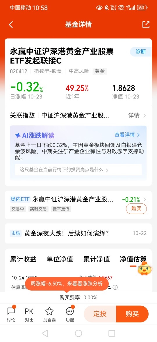 $永赢中证沪深港黄金产业股票ETF发起联接C$ 紧密跟踪黄金产业指数,覆盖沪深港三地黄金采掘、冶炼等全产业链企业,看业绩,近一年涨幅+49.25%,目前看,回调正好建个底仓布局明年行情呀,有一起布局的小伙伴嘛,机不可失,失不再来;重点关注了#15连阳!农行总市值逼近2.9万亿#