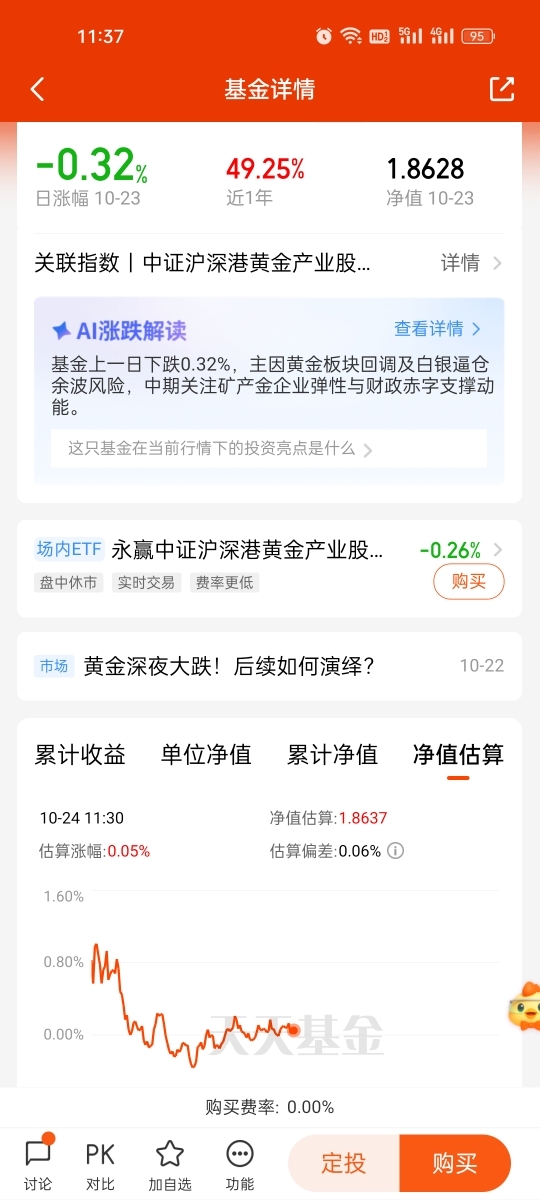 黄金行情来了,准备上车吃肉,永赢黄金股ETF020412今天估值小涨0.05#科技热点摊开业啦# %,近三个月收益率24.48%,近六个月涨幅35.35%,在同类基金中排名优秀,国庆长假期间黄金是最靓的仔 ,可以准备上了。
