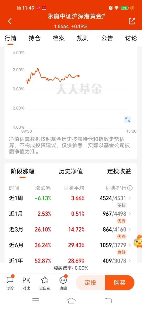 $永赢中证沪深港黄金产业股票ETF发起联接C$调整一下更有动力,近一个月涨幅2.