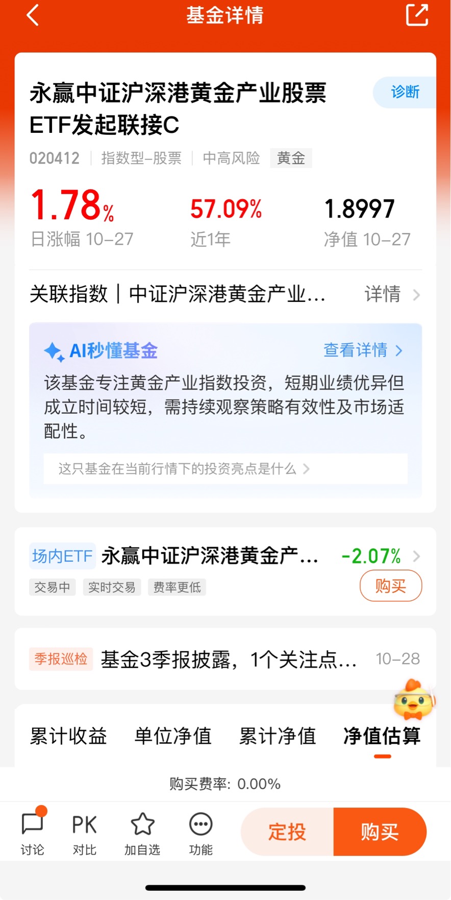 $永赢中证沪深港黄金产业股票ETF发起联接C$ 昨天收1.78%,近一个月收4.75%,近3个月收29.62%,近6个月收40.56%,近一年收57.09%,表现优秀!黄金作为避险资产,其长期投资价值依然显著。历史数据显示,降息周期中黄金的避险属性和抗通胀功能将进一步凸显。黄金股作为黄金的放大器,弹性很强!