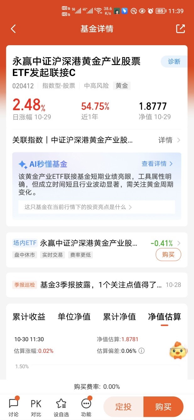 现在的性价比还是不错的,$永赢中证沪深港黄金产业股票ETF发起联接C$也是入场好