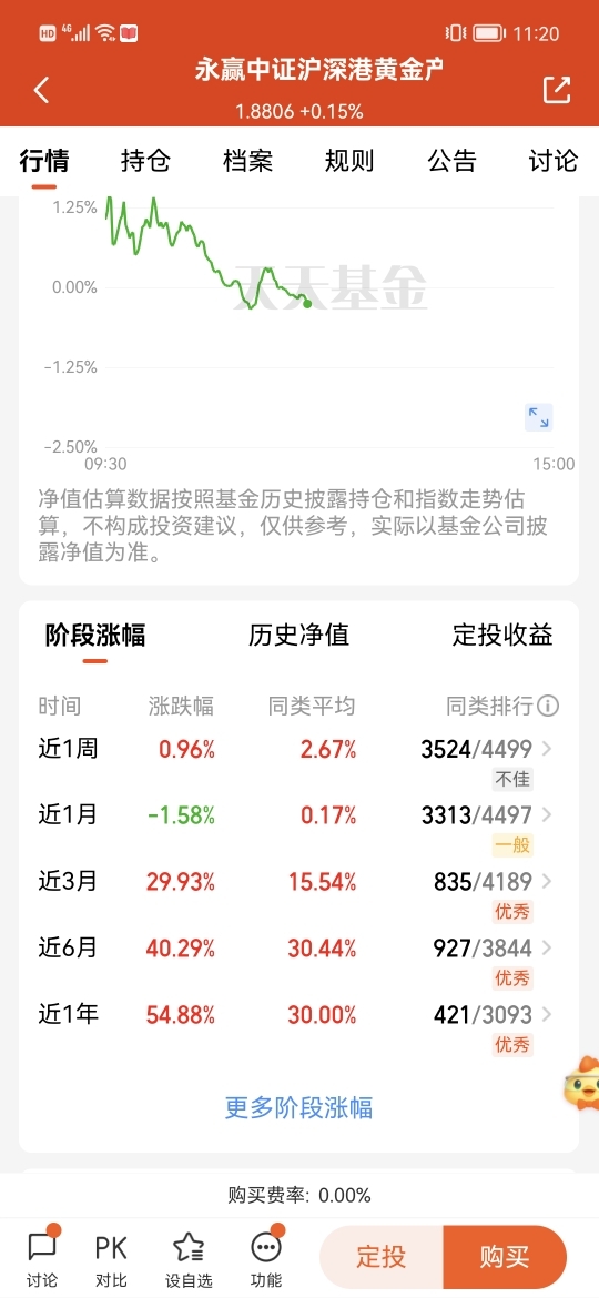 $永赢中证沪深港黄金产业股票ETF发起联接C$ 昨天小涨0.15%,近三个月涨29.93%,近一年54.88%的涨幅,业绩表现亮眼。数据显示,2025年以来黄金股板块的涨幅持续跑赢现货黄金,Wind黄金行业指数年初至10月中旬的涨幅达到100%,远超同期国际金价51%的涨幅。看好就抓紧跟上,回调也是机会,加油冲!#美联储再次降息!12月降息与否难料#