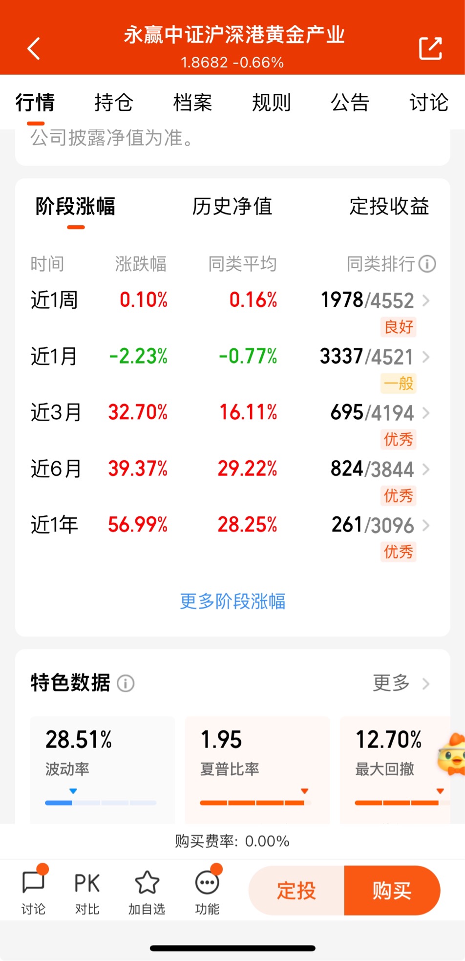 $永赢中证沪深港黄金产业股票ETF发起联接C$黄金股也要日常加仓起来,近3个月收