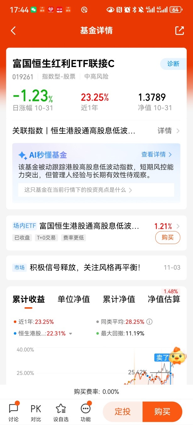 黄金和高股息低波动其实挺配一个避险,一个稳收。我两边都拿着,富国这只近1个月涨3%、近2年涨53%,回本最快只要24天,港股通里它算稳的了。