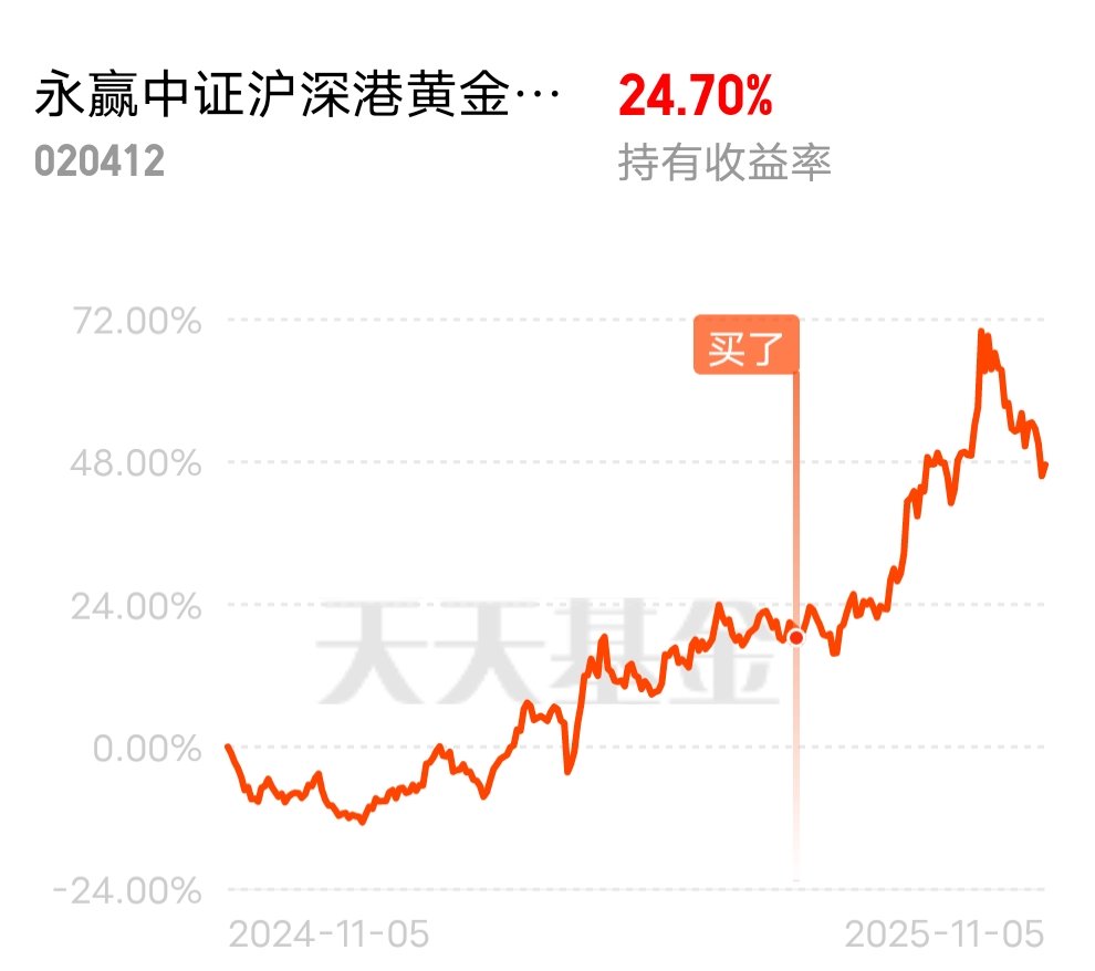 $永赢中证沪深港黄金产业股票ETF发起联接C$黄金股迎来连涨趋势了,可以考虑适当