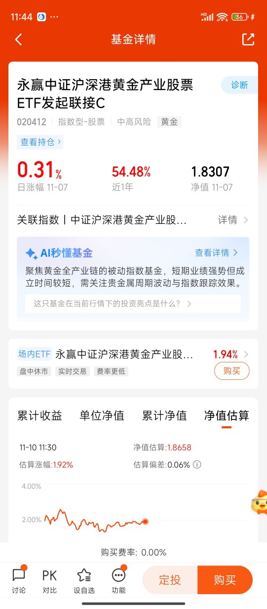 #11月基金投资策略# 近期黄金反弹形势来袭。周五拉涨0.31%的$永赢中证沪深港黄金产业股票ETF发起联接C$ 连涨三天,近三月涨幅20.97%。近半年涨幅32.09%。近一年涨幅达到54.48%。数据结构更有说服力。避险增值首选黄金。全市场规模最大的黄金股基金。布局沪深港黄金上市企业,覆盖全产业链,堪称黄金放大器。值得信赖!