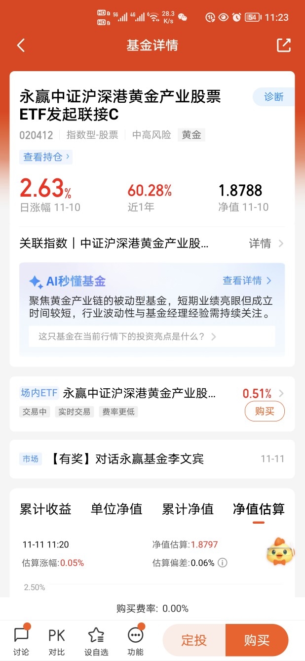 最近的表现挺不错呀,$永赢中证沪深港黄金产业股票ETF发起联接C$已经连续红了四