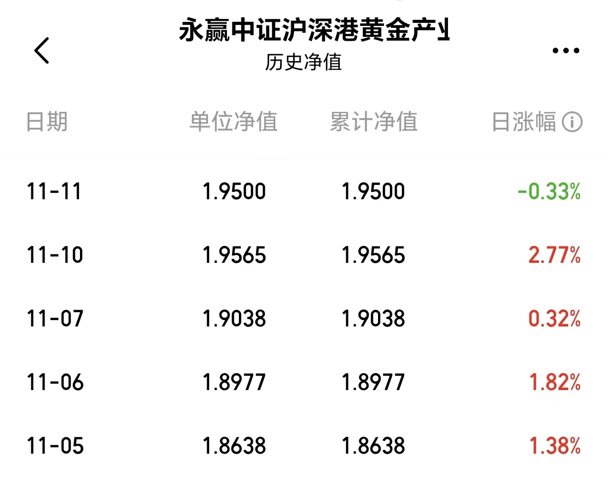 $永赢中证沪深港黄金产业股票ETF发起联接A$ (020411)