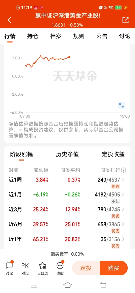 $永赢中证沪深港黄金产业股票ETF发起联接C$黄金股比较活跃!目前估值涨幅3个点
