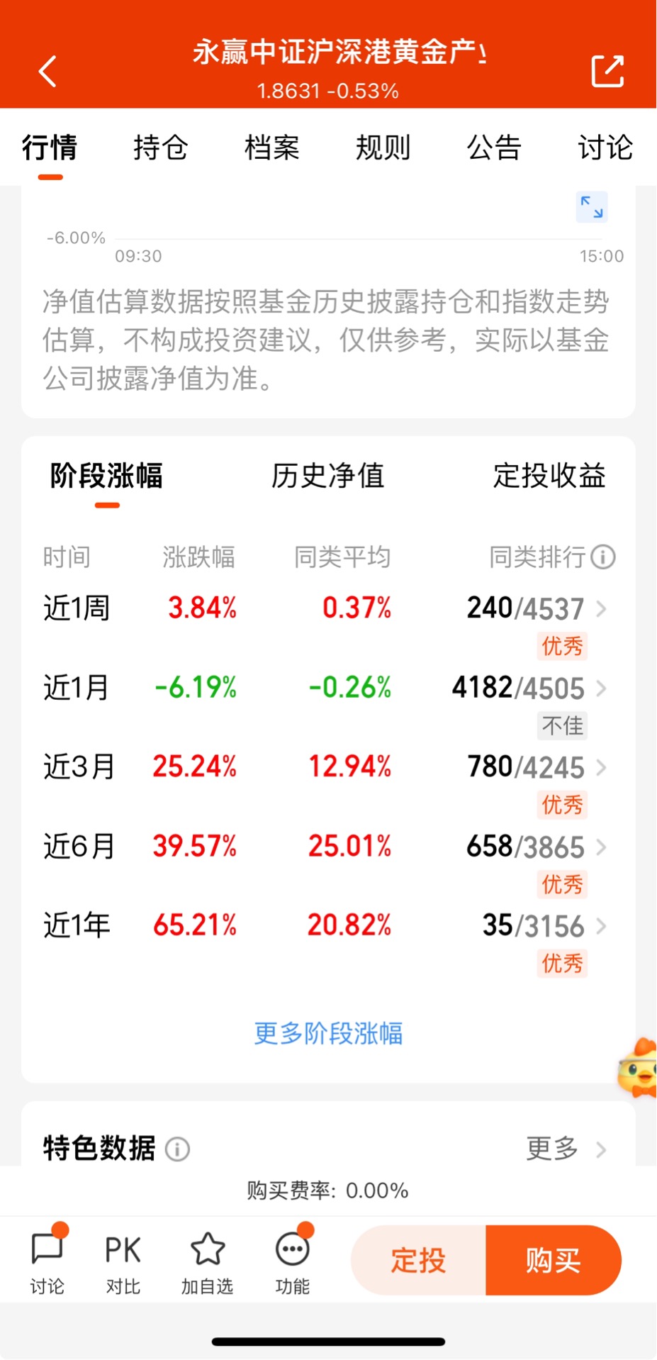 $永赢中证沪深港黄金产业股票ETF发起联接C$ 黄金适合长期配置起来了,近一周收3.84%,近3个月收25.24%,近 6个月收39.57%,近一年收65.21%,表现优秀!刚好精准覆盖了黄金产业链的核心环节,不管是上游的金矿开采企业,中游的冶炼加工企业,还是下游的黄金零售龙头,都被纳入了持仓。这种全产业链布局的好处是,不管是金价上涨带动上游盈利,还是消费旺季拉动下游业绩,基金都能从中受益!