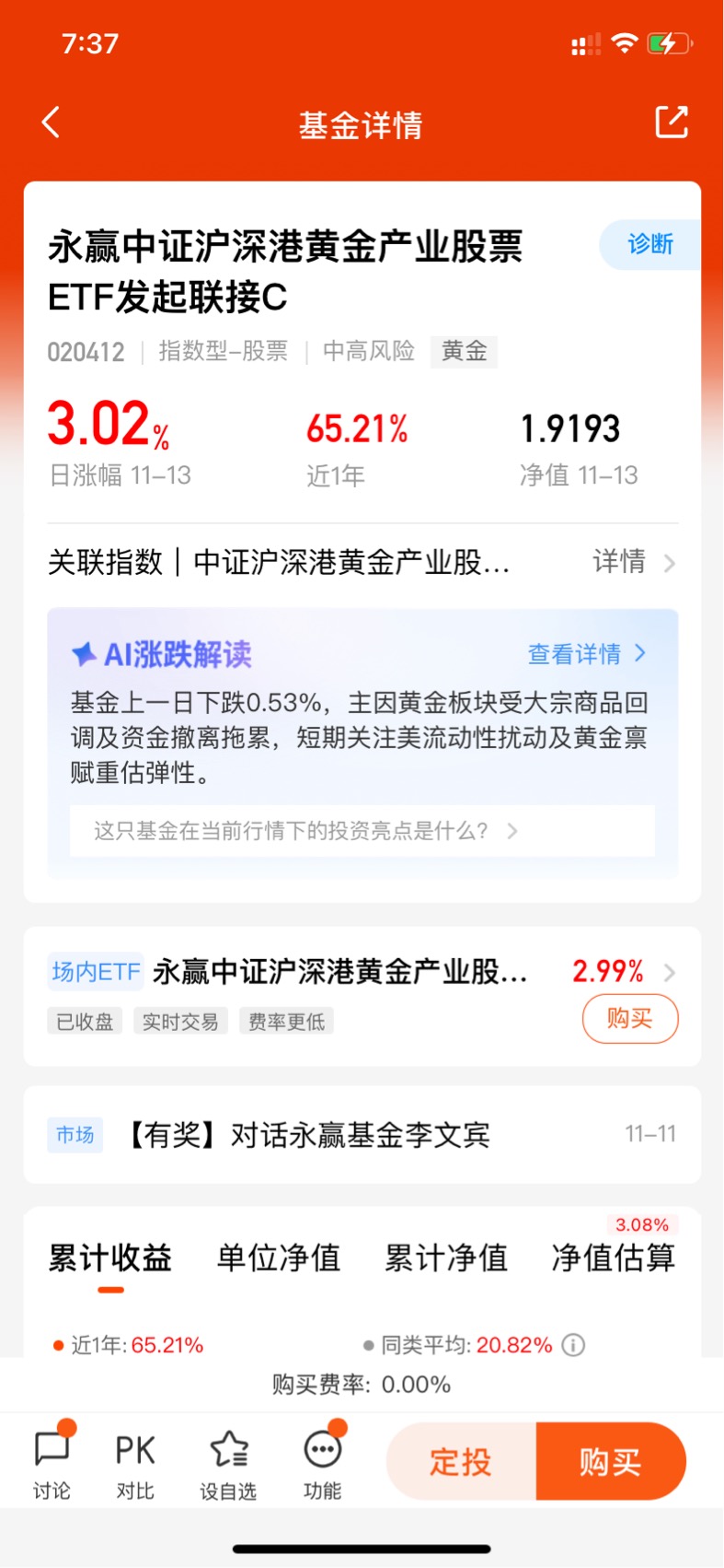 $永赢中证沪深港黄金产业股票ETF发起联接C$ 今天涨了3.02%,七天五涨,看走势,黄金板块反弹上涨了!永赢中证沪深港黄金产业聚焦黄金产业链,股票规模大而且流动性好,黄金股本就是黄金的放大器,其弹性更强一些,近半年涨超39%,近一年涨超65%,业绩表现优秀,期待接下来的表现了!#黄金又牛起来了!这次你上车了吗?#