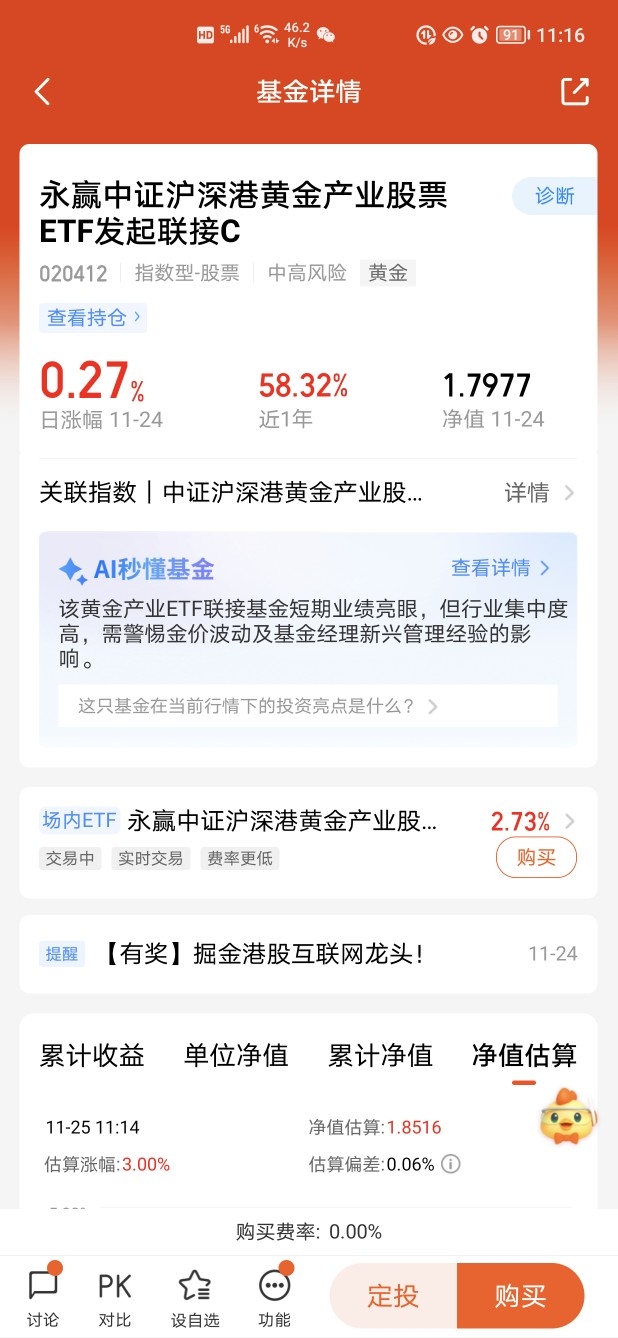 黄金产业在国家层面的战略地位再度提升,$永赢中证沪深港黄金产业股票ETF发起联接