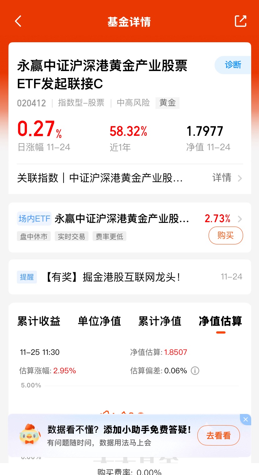#黄金又牛起来了!这次你上车了吗?# 黄金矿业股表现强劲,今年迄今飙升超过120%,远超其他行业。沪深A股黄金板块上市公司业绩亮眼,营收、扣非净利润显著增长,行业集中度提升,龙头引领作用明显。$永赢中证沪深港黄金产业股票ETF发起联接C$ 昨天上涨0.27%,近三个月收益19.97%;近六个月收益27.14%,近一年收益58.32%,长期业绩优秀;全球央行持续增持黄金,2025年前三季度净购金量达902吨,黄金储备占比提升,为金价提供长期支撑。