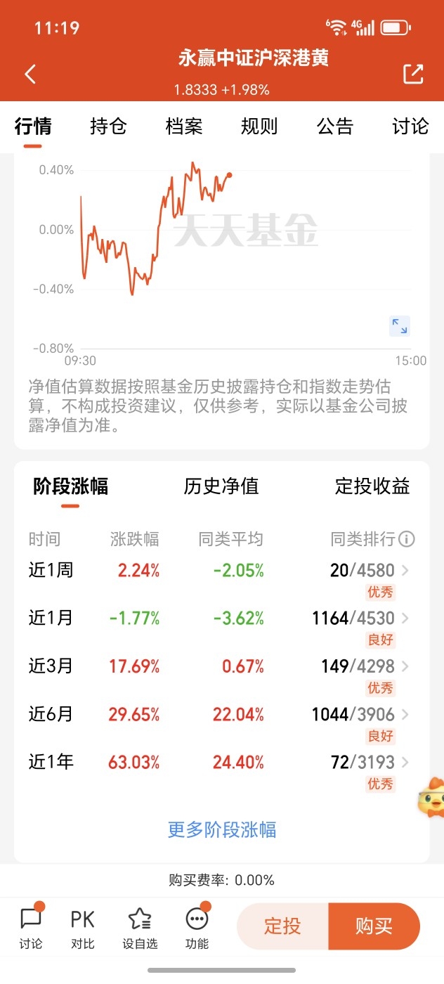 $永赢中证沪深港黄金产业股票ETF发起联接C$ 紧密跟踪黄金产业指数,覆盖沪深港三地黄金采掘、冶炼等全产业链企业。昨天上涨1.98%,近三个月涨17.69%,近一年63.03%的涨幅,业绩表现优秀。受宏观宽松预期强化、央行购金潮持续、避险需求与去美元化趋势共振,更多避险资金进入黄金资产。作为金价放大器,相信黄金股后市可期!#3800点的A股值得加仓吗?#