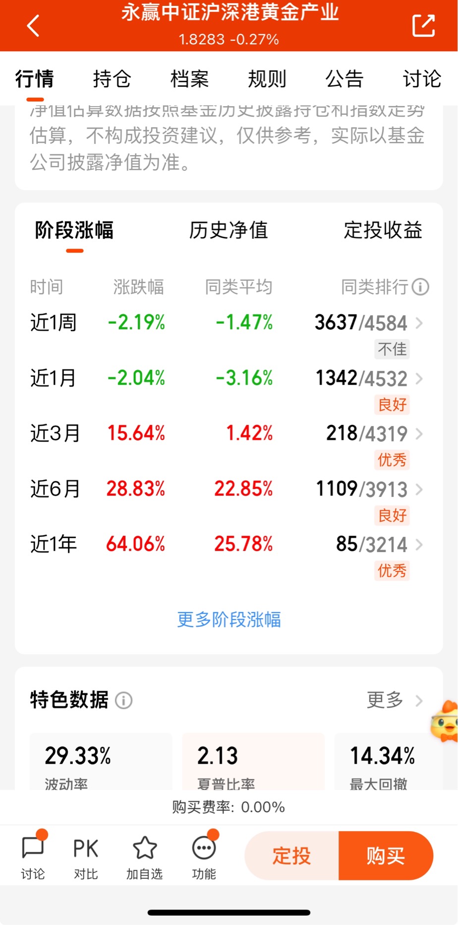 $永赢中证沪深港黄金产业股票ETF发起联接C$最近的黄金可以日常加仓了,近3个月