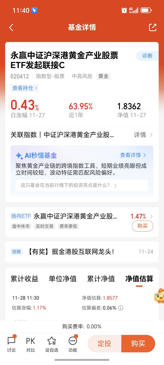 黄金股即黄金产业链上的上市公司股票,弹性高于现货黄金,因此被称为“黄金投资放大器”。$永赢中证沪深港黄金产业股票ETF发起联接C$ 昨天上涨0.43%,近六个月涨32.25%,近一年63.95%的涨幅,业绩表现亮眼。全球央行持续增持黄金,2025年前三季度净购金量达902吨,黄金储备占比提升,为金价提供长期支撑。继续看好黄金股,期待后市表现。#今年你的投资目标达成了吗?#