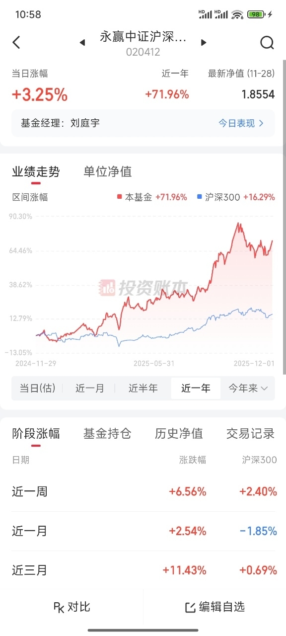 今天大盘行情向好,多板块普涨,黄金板块也迎来超级大反弹,打算上车一波永赢黄金股ETF020412,今天估值大涨3.25%,近一年涨幅68.23%,和同类基金比,业绩非常出色,闲钱可以埋伏起来,上方空间还是很大的。