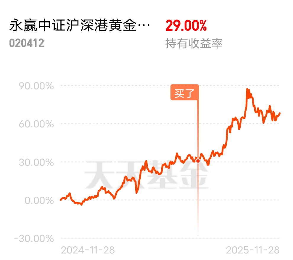 $永赢中证沪深港黄金产业股票ETF发起联接C$这基表现亮眼呀,看好黄金股,跟着吃肉了