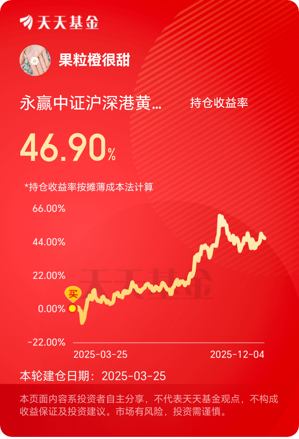 黄金这走势确实稳啊,之前就说长期看涨,现在又涨起来了,看来眼光没错。$永赢中证沪深港黄金产业股票ETF发起联接C$ #晒收益#