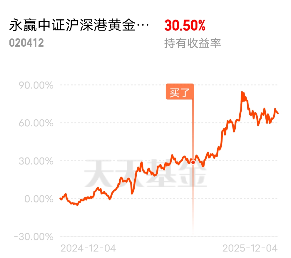 $永赢中证沪深港黄金产业股票ETF发起联接C$今天这基涨势不错的,跟着吃肉了