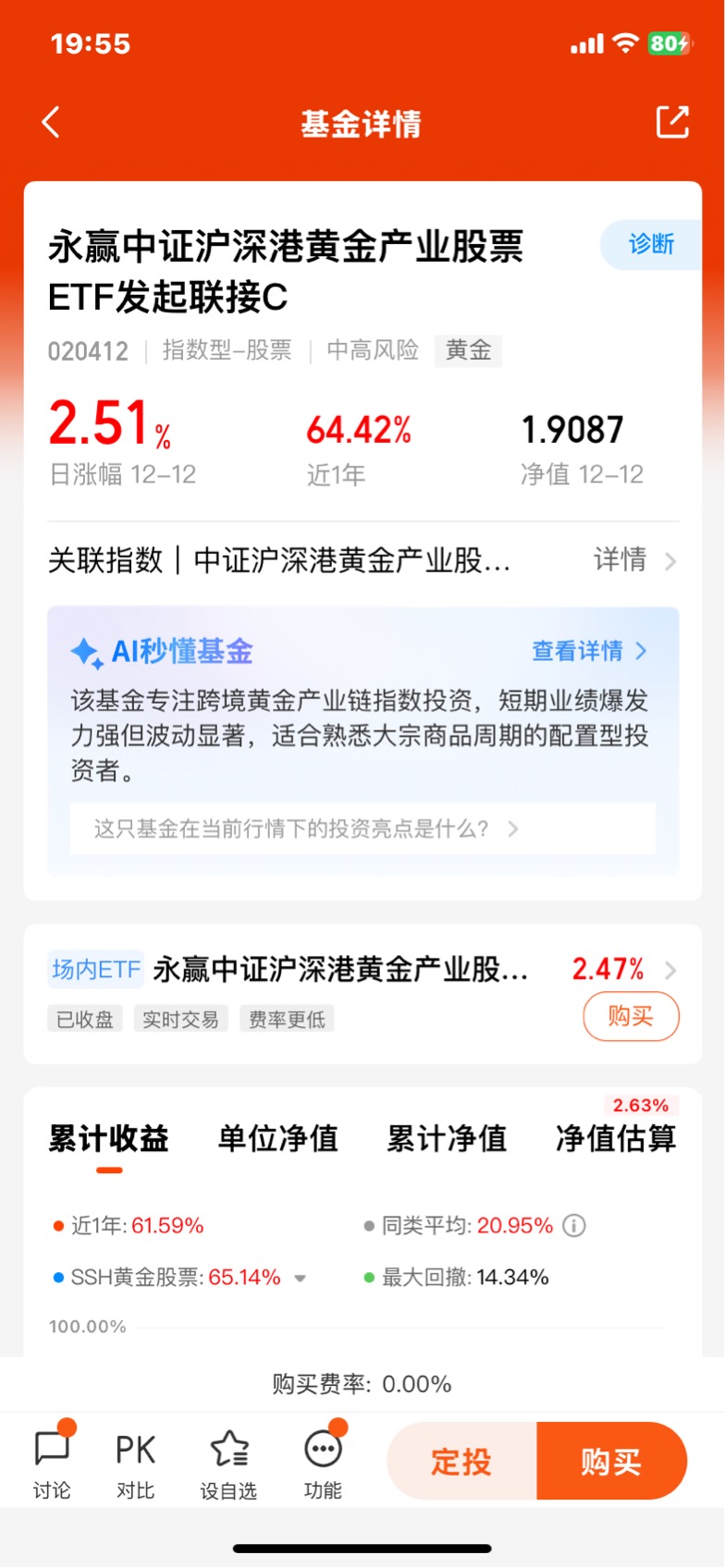 #国际银价涨疯了!现在上车还来得及吗?# 黄金是全球公认的硬通货,不受单一国家或地区的政策限制,可在国际市场上自由流通。无论经济环境如何变化,黄金的价值始终被广泛认可。$永赢中证沪深港黄金产业股票ETF发起联接C$ 今天大涨2.51%,近一年收益64.42,长期业绩优秀;从长期看,黄金作为全球货币体系的“稳定器”和“压舱石”角色不会改变。