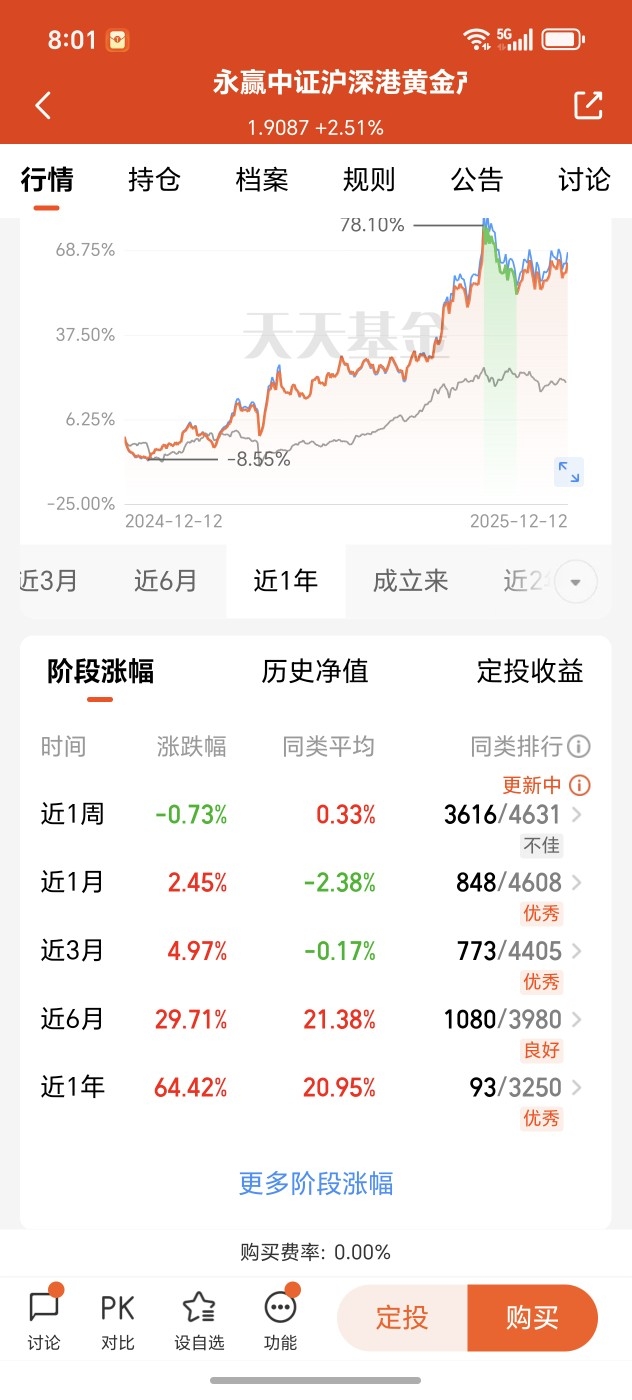 $永赢中证沪深港黄金产业股票ETF发起联接C$ 今天上涨2.51%,近六个月涨29.71%,近一年64.42%的涨幅,业绩表现很不错。我国央行已连续多月增持黄金储备。这种国家层面的、持续的配置行为,为金价提供了强大的稳定性支撑。黄金作为终极避险资产和抗通胀工具,其战略价值在这样的时代背景下被不断重估。作为金价放大器的黄金股也是很值得期待的。#美联储宣布降息25个基点 如何布局?#