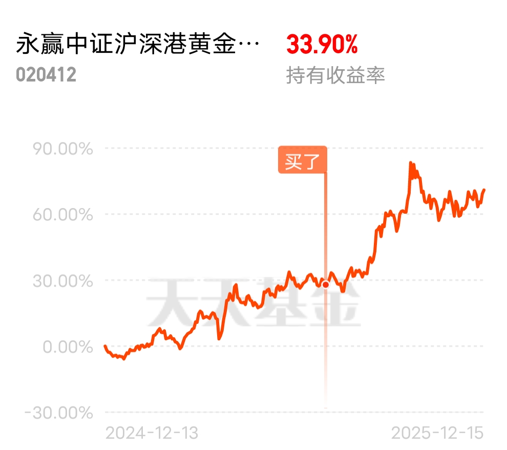 $永赢中证沪深港黄金产业股票ETF发起联接C$黄金板块调整,我打算加点仓,整体业绩表现不错的