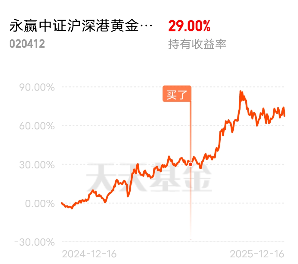$永赢中证沪深港黄金产业股票ETF发起联接C$黄金股业绩表现不错,今天上涨的趋势,继续跟一波