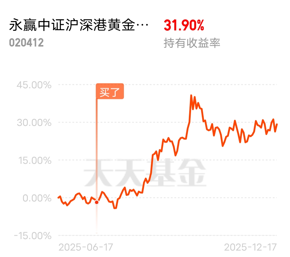 $永赢中证沪深港黄金产业股票ETF发起联接C$黄金股迎来上涨趋势了,跟着拿长期就