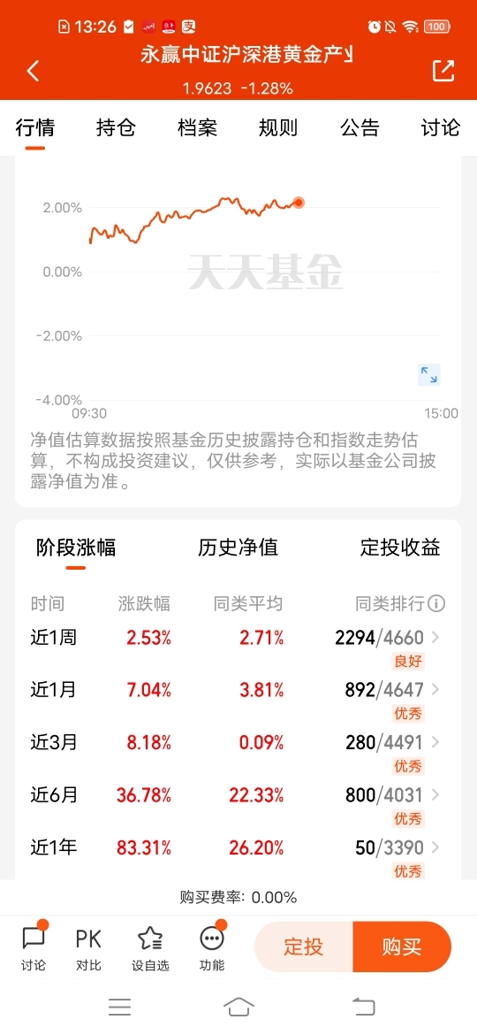 $永赢中证沪深港黄金产业股票ETF发起联接C$ 黄金股目前估值涨幅超2个点,黄金牛市有色行情双逻辑,远高于实物黄金,近一周涨幅2.53%,近三个月涨幅8.18%,近六个月涨幅36.78%,近一年涨幅83.31%,黄金股作为传统的避险资产,其吸引力自然得到了提升。投资者纷纷转向黄金股市场,主要投资的是黄金产业的上市公司,指数弹性大于金价。并且指数的费率低。#新年观察局:2026我看好的投资赛道#