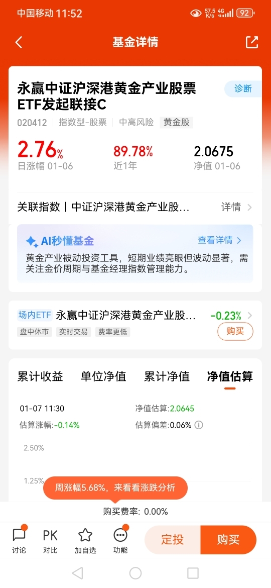 #晒晒我的2025投资战绩!# 从中长期来看,黄金的金融属性将持续受益。关税对民生用品价格的传导仍在继续,部分地区的冲突或推动油价大幅上行,后续美通胀或维持韧性,经济数据的疲软使得美或将在较长时间内处于滞胀环境当中,现在开始着手布局今年行情也是不错的呀;$永赢中证沪深港黄金产业股票ETF发起联接C$ 昨日上涨+2.76%,近一年涨幅+89.78%