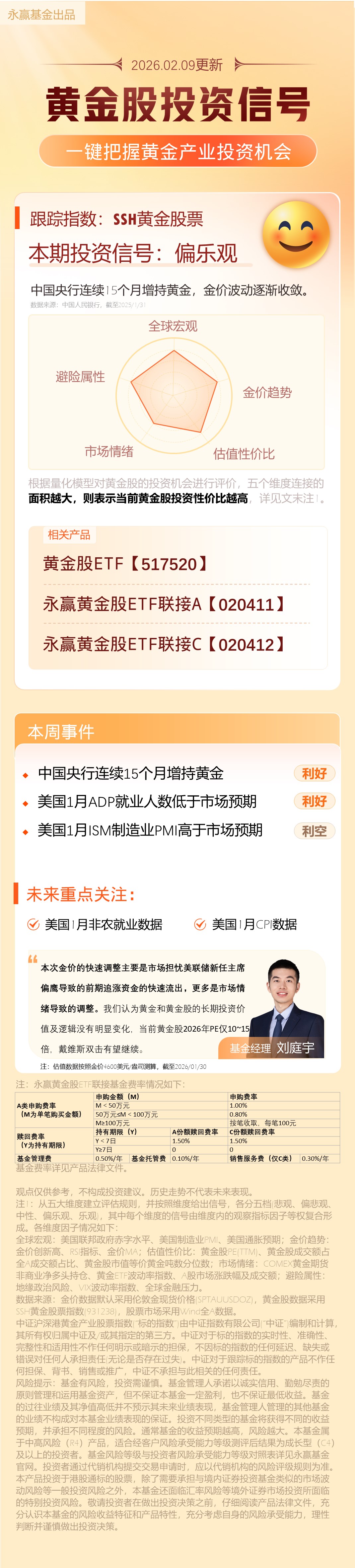 0209黄金股投资信号:偏乐观。中国央行连续15个月增持黄金,金价波动逐渐收敛。