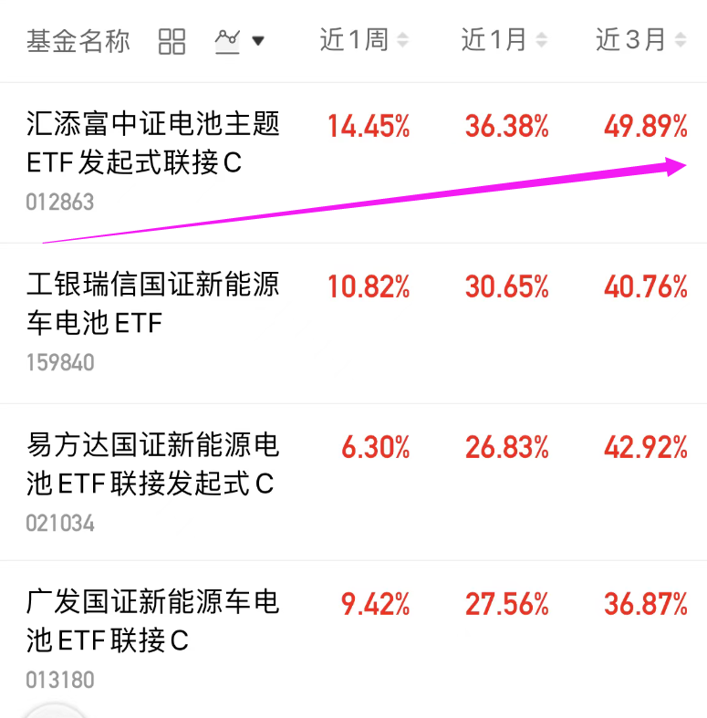 连涨了四天的$汇添富中证电池主题ETF发起式联接C(OTCFUND|012863)$今天小幅调整倒车接人,那必须加一波啊!这个指数紧密跟踪中证电池主题指数,覆盖了动力电池、储能电池及产业链上下游,覆盖面比较全,能吃到电池板块的完整行情,成分股包括阳光电源、宁德时代、三花智控、亿纬锂能、国轩高科、先导智能等电池龙头企业,创新能力强成长性高。近一周+14.45%,近一个月+36.38%,近期展示了电池板块的强爆发力,赚钱能力也很突出,而且同类指数中,汇添富家的费率最低。