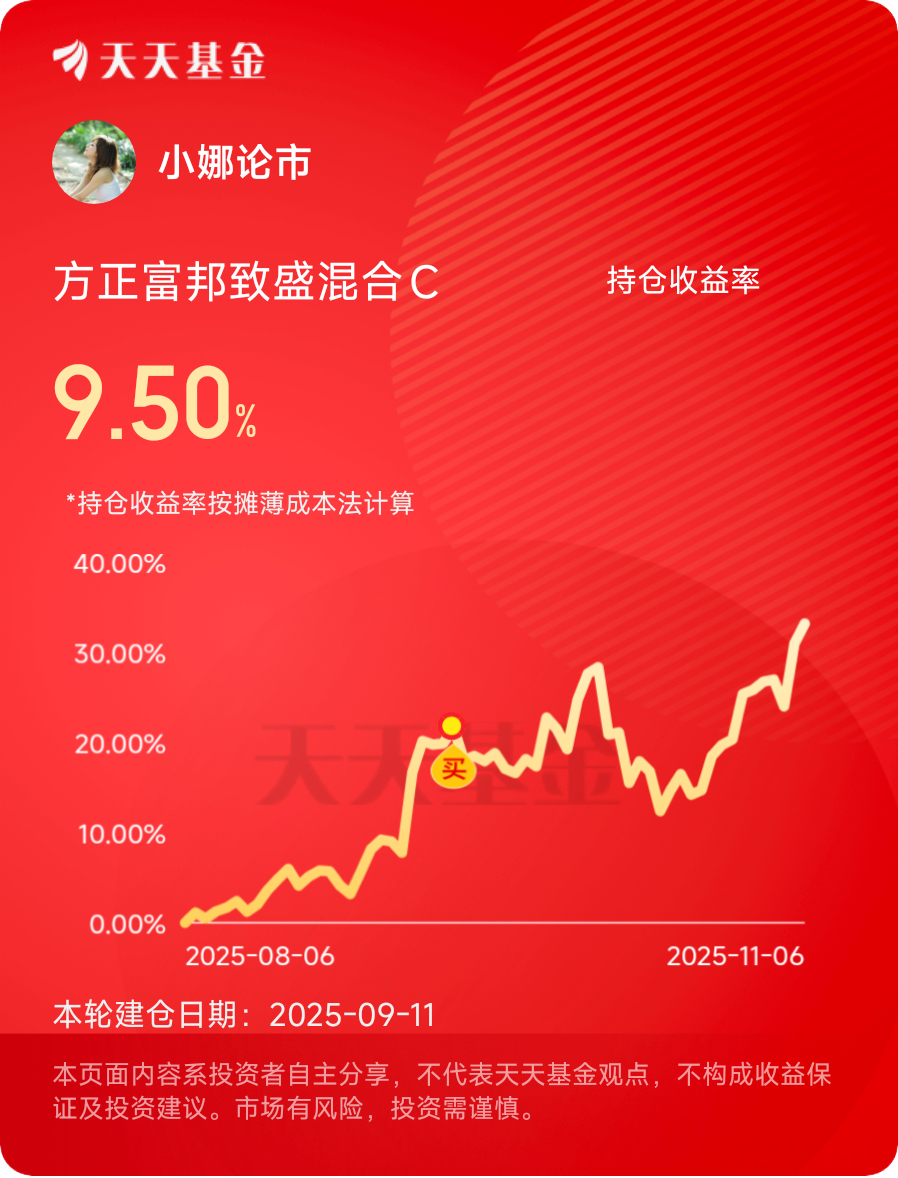 又涨了又涨了,看好固态电池成为新的主线,顺势而为,不要盲目追高,也不要死守老登。$方正富邦致盛混合C$ #晒收益#