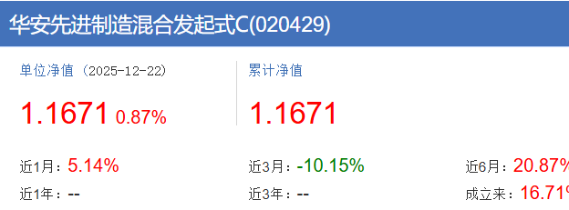 $华安先进制造混合发起式C$(020429)昨天涨了0.87%