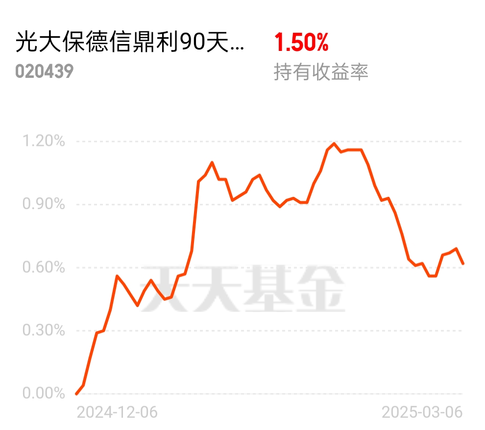 这只业绩不错,债市大涨的时候弹性不错,蛋蛋收的挺多!$光大保德信鼎利90天滚动持