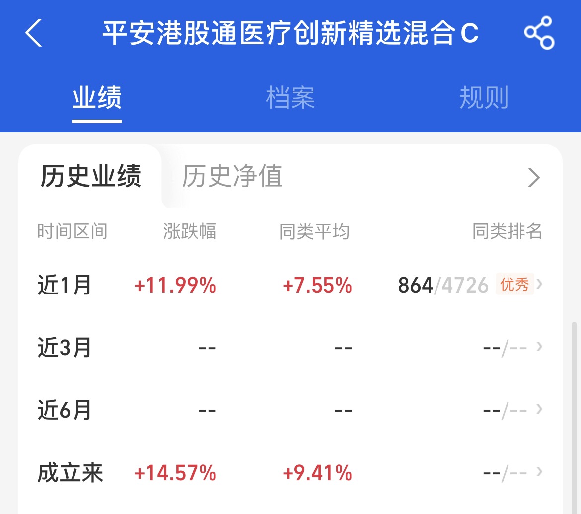 $平安港股通医疗创新精选混合C$ 近一月上涨11.99%挺优秀的