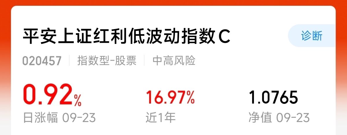 $平安上证红利低波动指数C$ 今天涨了0.92%,