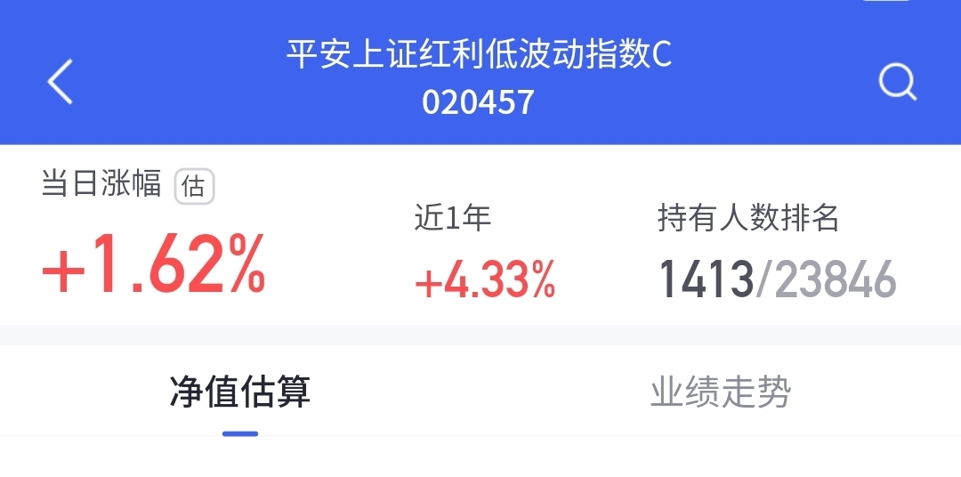 $平安上证红利低波动指数C$ 今天估值大涨1.62%,真不错!