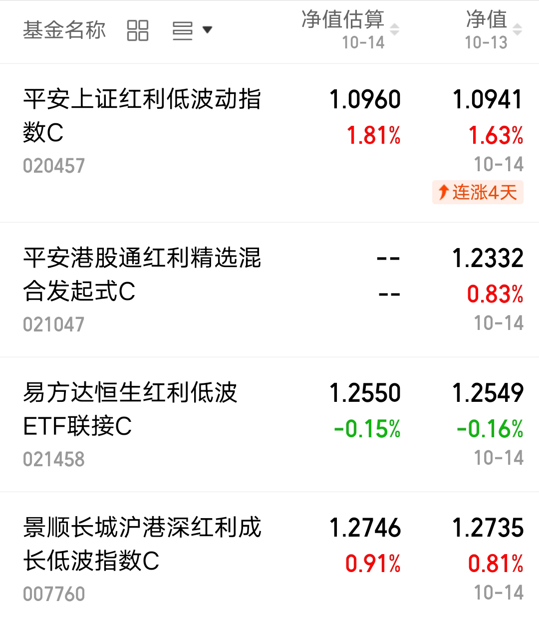 $平安上证红利低波动指数C$ 今晚涨1.63%挺不错的