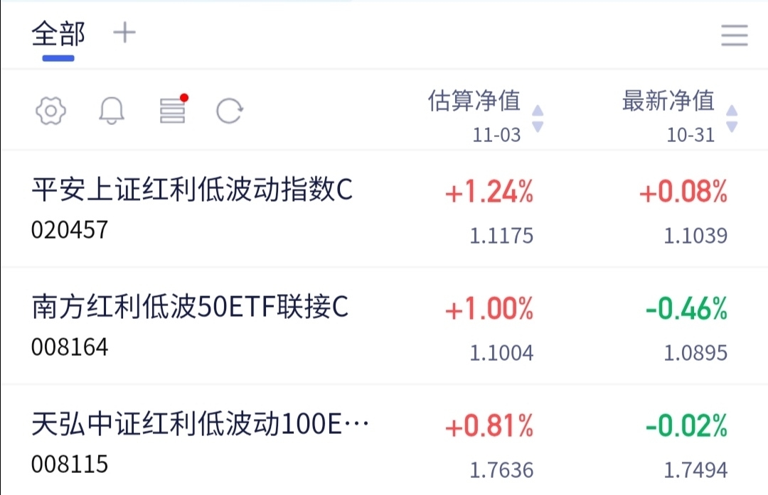 红利行情来了,反弹不少。$平安上证红利低波动指数C$最新估值上涨了1.24%,表