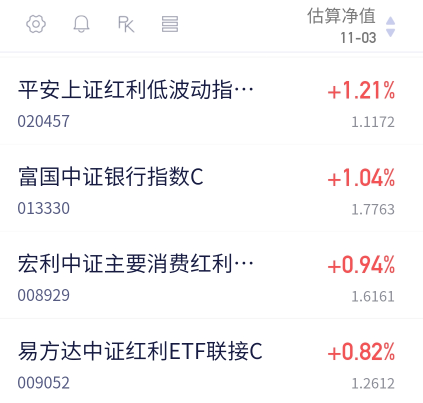 午后行情表现还是不错,又开始拉升,三大指数开始泛红,红利板块表现更加强势,全天候有韧性,平安上证红利低波动指数C,估值+1.21%,不错,厉害了。