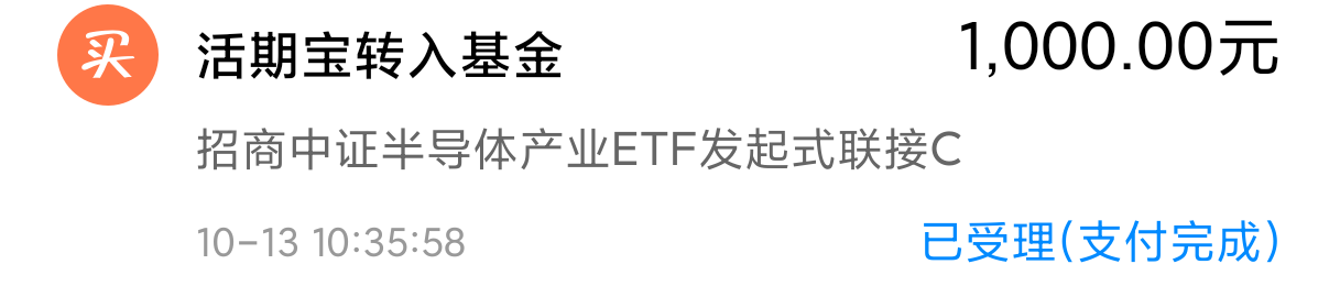 加仓买进1000的 $招商中证半导体产业ETF发起式联接C(OTCFUND|020465)$