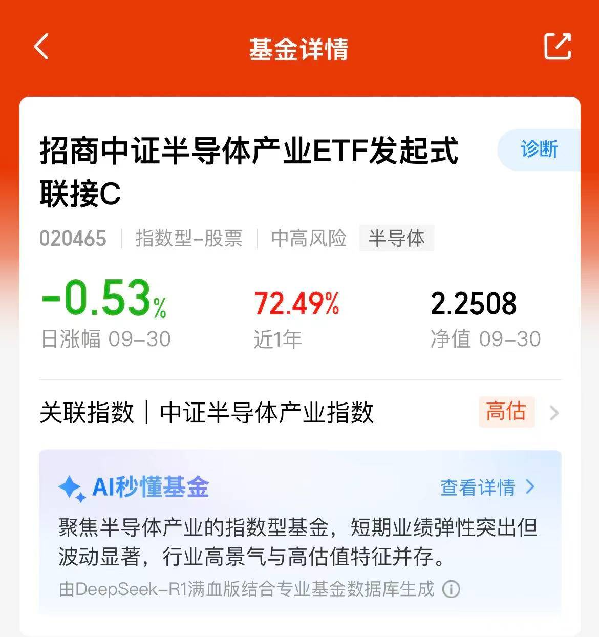 开门红啦,今天大盘表现不错哟,半导体迎来大涨,$招商中证半导体产业ETF发起式联接C(OTCFUND|020465)$目前估值上涨5.65%,近一个月涨幅19.3%,近三个月涨幅52.56%,近一年涨幅72.49%,业绩优秀,重仓涵盖北方海创、中微公司、中芯国际等等,日韩政策红利延续等等各种利好多多,我也是继续看好国内龙头啦,后续打算分批布局起来!