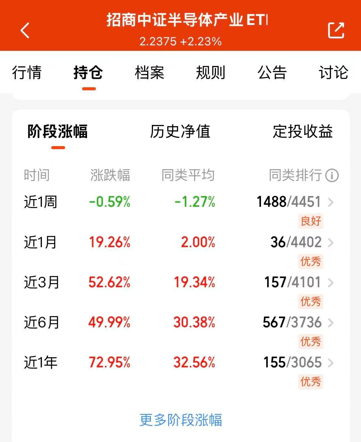 行情震荡回落,三大指数涨跌不一,而且板块也分化了,科技方向继续调整,半导体今天跌幅还是挺大的,但是长期上涨趋势不变,不用慌张。$招商中证半导体产业ETF发起式联接C(OTCFUND|020465)$持仓涵盖中微公司、北方海创、寒武纪等等龙头,年化收益率72.95%,业绩优秀,而且还有TMT三季报+十五五规划等利好,我是继续看涨的!