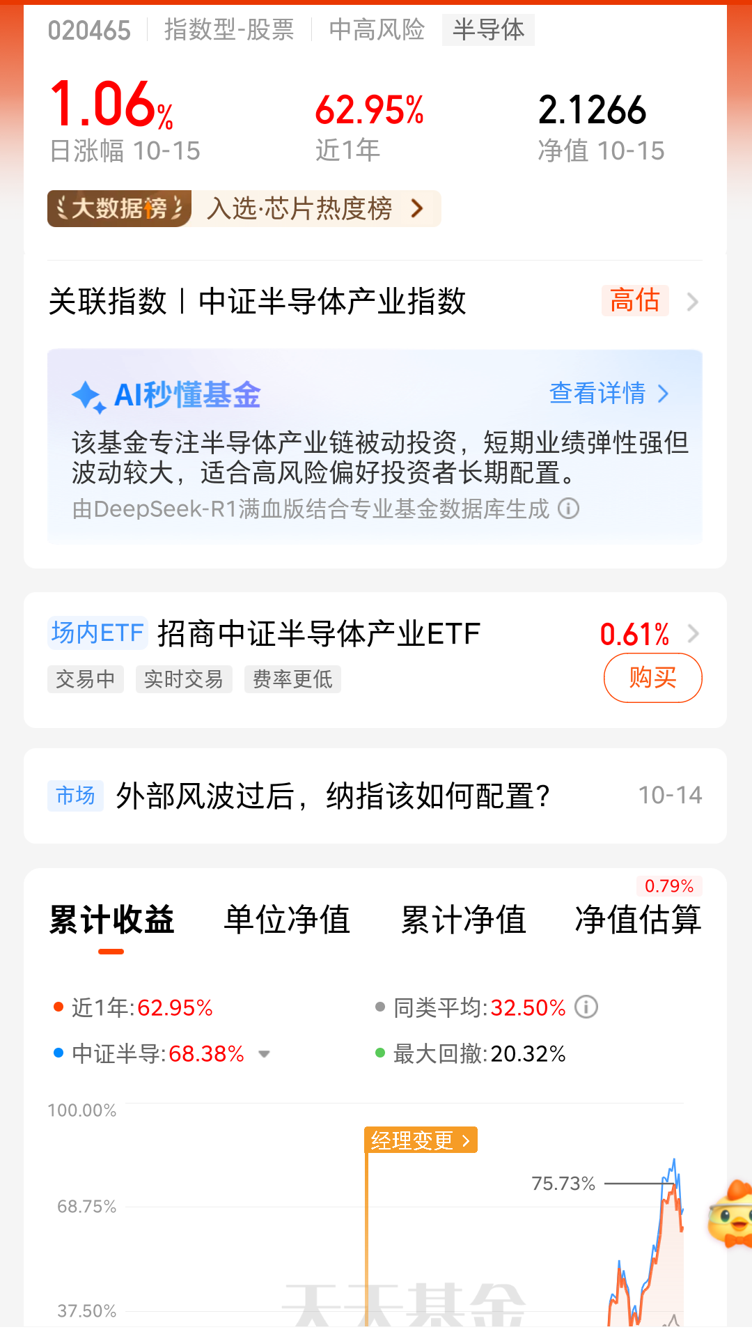 近年来我国半导体产业迅速发展,自主可控之路是会坚定的走下去的,而且我国半导体设备目前正以“集团式突围”的方式打开市场份额,许多公司以多产品线布局形成了“集团军式作战体系”,让设备的国产替代不只是单一发生在某个设备上,用“多点爆破”的方式打破海外设备的“系统性垄断”,加速半导体设备国产化进程。现在上车布局正当时啊,我选择的是$招商中证半导体产业ETF发起式联接C(OTCFUND|020465)$大家也可以关注一下。