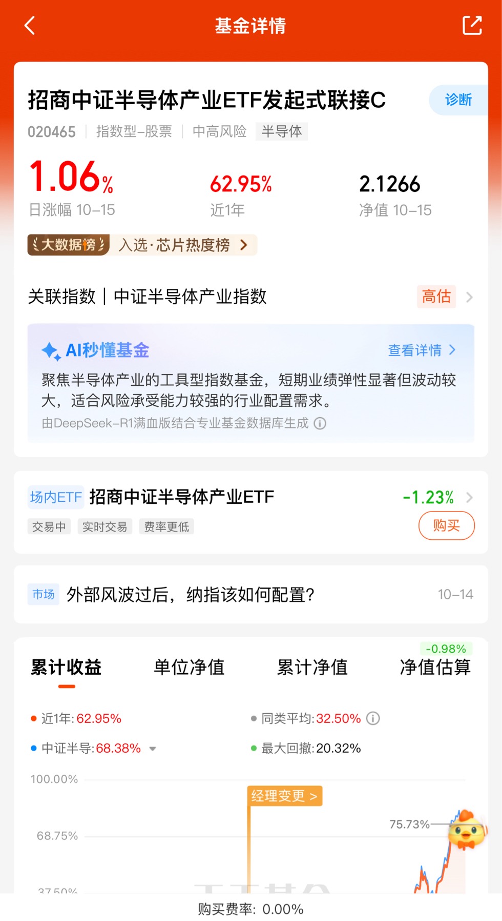 $招商中证半导体产业ETF发起式联接C$ 紧密跟踪半导体产业核心环节,覆盖设备、材料、设计等优质企业,助力投资者把握国产替代浪潮下的长期增长机遇。