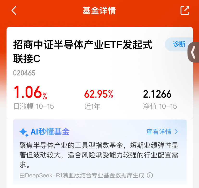 今天股市行情比较动荡,板块分化加剧,不过半导体盘中维持小幅上涨,其中$招商中证半导体产业ETF发起式联接C(OTCFUND|020465)$昨天大涨+1.06%,它聚焦半导体方向,年度涨超63%,随着我国对半导体加大投入力度,其产业进程进一步提速,国产半导体替代成为大势所趋,后续市场前景广阔,我们适时布局,紧抓热点吃红利吧!$易方达中证人工智能主题ETF联接C(OTCFUND|012734)$$永赢半导体产业智选混合发起C(OTCFUND|015968)$#存储芯片掀涨价潮!行业迎超级周期##机器人新催化?马斯克构建“世界模型”#